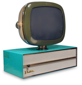 Simple, smart, and bright, the Debbie is the most economical Predicta television. Built for motels, fleet units, and the student's budget, the Debbie is the little sister to the Princess, alike in every way sans her big sister's brass shadow box and channel selector. The Debbie still treats you with an on/off volume button and remote control. Everyone has room for the Debbie! |