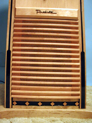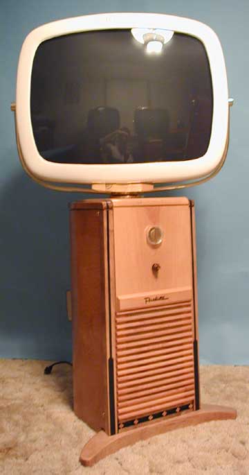 Pedestal® TV in blonde with custom inlays and all-white tube enclosure.