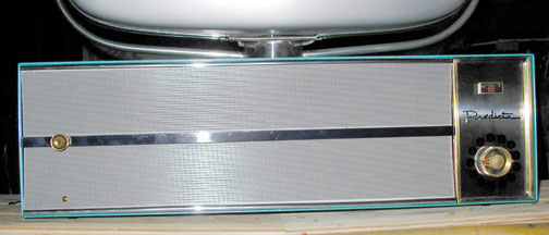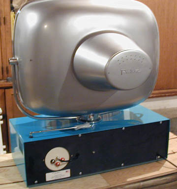Princess® TV in Turquoise with custom silver tube enclosure and steel grille with silver accents.