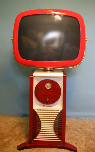 Corona™ TV in ruby red with custom white contrast and red/white tube enclosure combination
